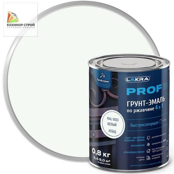 —Грунт-эмаль по ржавчине 4 в 1 база А белая RAL 9003 (2,8 кг) ЛАКРА PROF IT