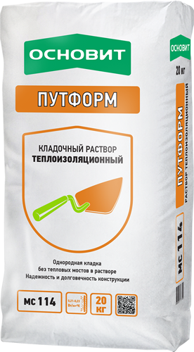 <div>Теплоизоляционный кладочный раствор ОСНОВИТ ПУТФОРМ МС114 предназначен для кладки стен из лёгких пустотелых керамических блоков, блоков из бетона на пористых заполнителях. Используется для возведения однородной кладки без тепловых мостов в растворе. </div>