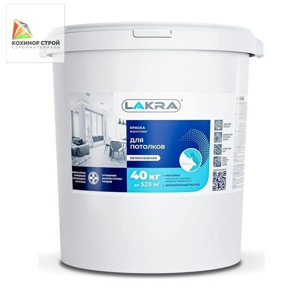 —Краска акриловая для потолков белоснежная (40 кг) ЛАКРА