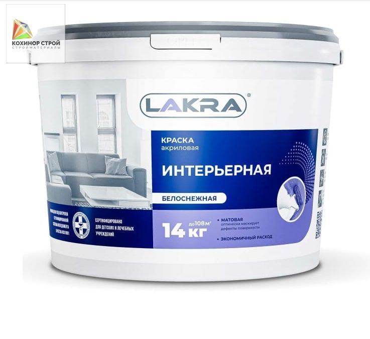 8306473 Краска акриловая интерьерная (14 кг) белоснежная ЛАКРА