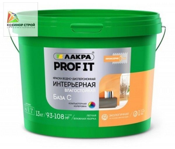 8307495 Краска акриловая интерьерная влагостойкая белая База С (13 кг) ЛАКРА PROF IT