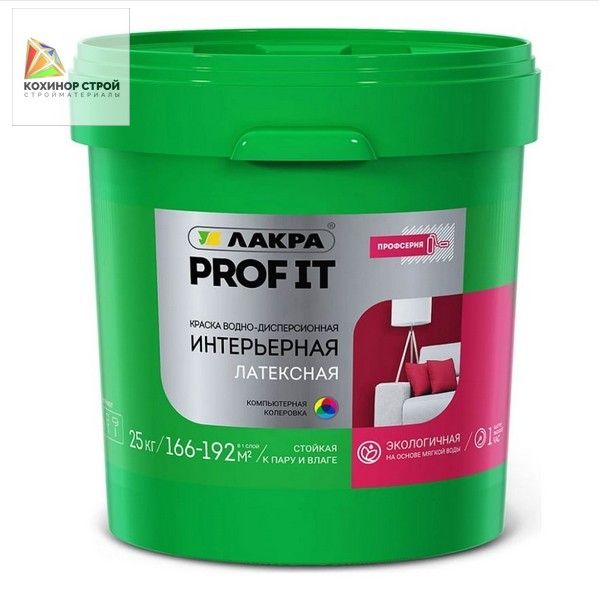 Интерьерная латексная краска Лакра PROF IT База А – это высококачественное покрытие для стен и потолков внутри жилых, офисных и коммерческих помещений. Краска имеет базовый белый цвет – это значит, что ее можно дополнительно тонировать в нужный оттенок с помощью красочных паст или красок на водной основе.
