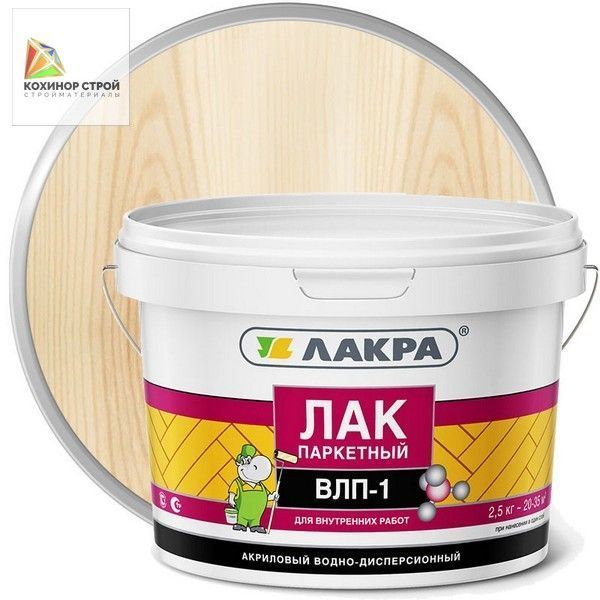 ВЛП-1 лак паркетный ЛАКРА - это высококачественное покрытие на основе водной акриловой дисперсии, предназначенное для защиты паркета и других древесных поверхностей от воздействия внешних факторов и износа. Придает деревянным поверхностям красивый декоративный вид. Он отличается высокой прочностью, устойчивостью к истиранию, влаге и химическим веществам.