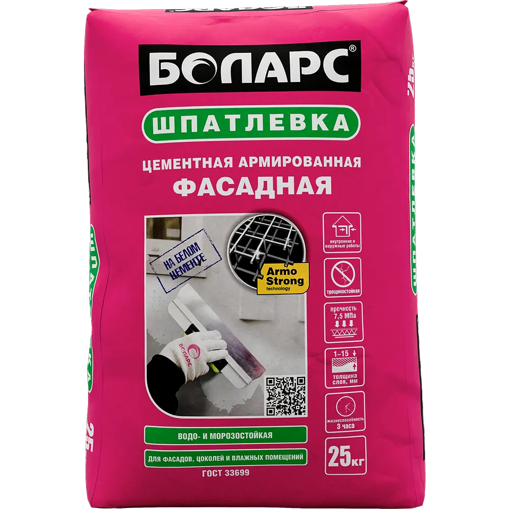 БОЛАРС ШПАТЛЕВКА ЦЕМЕНТНАЯ "ФАСАДНАЯ" .(25 кг) 48 шт на поддоне