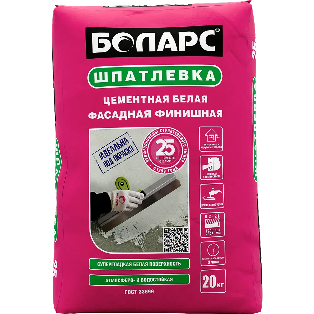 БОЛАРС ШПАТЛЕВКА ЦЕМЕНТНАЯ "ФАСАДНАЯ ФИНИШНАЯ" (20 кг) 48 шт на поддоне